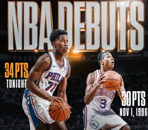 首秀轰34分!直接超越艾弗森,76人新秀让詹姆斯当老二